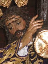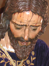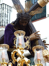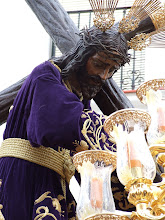 El silencio y el respeto de los hermanos se hace latente ante la única luz de los candelabros del paso de Cristo acompañado por Simón de Cirene.